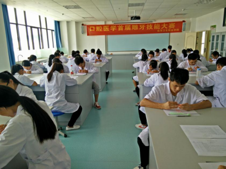 2016年6月1日,由红河卫生职业学院临床医学系口腔专业主办的“口腔医学专业首届雕牙技能大赛”在综合实训楼口腔实训中心401举行。本次比赛有57名学生参加,内容是在2小时内用蜡块完成左上第一磨牙的雕刻;旨在促进教学,提高学生学习兴趣和实际动手能力,并通过“以赛促教、以赛促学、义赛促练”的目的,形成“爱学习、比技能”的良好学风。
