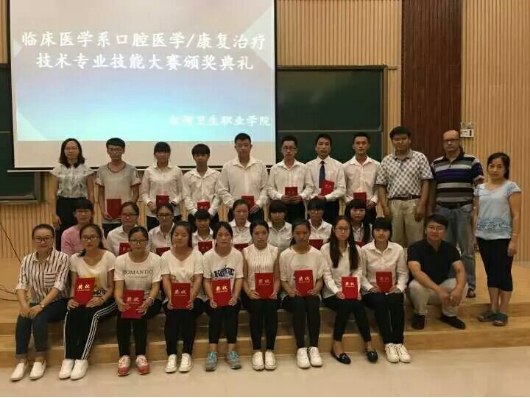 2016年6月7号晚上在学术报告厅举行了颁奖典礼,学院党委书记张云学、临床医学系主任林坚、蒙自市第一人民医院口腔科主任张洁等应邀出席。本次比赛口腔医学专业一共有三个奖项,一等奖(李艳梅)二等奖(魏艾伦、张晶)三等奖(李德翠、和娟、刘进前);林坚主任对本次技能大赛表示了肯定,赞扬了同学们的专业技能以及积极向上、勇于竞争的精神,同时鼓励同学们继续努力!