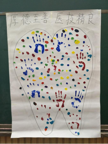 活动结束时,全体师生们共同完成了“中国梦、牙医梦”手绘牙医梦想图,这其中凝聚着口腔医学专业“厚德至善、医技精良”职业精神。