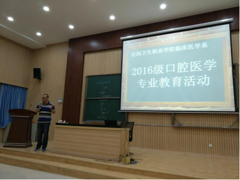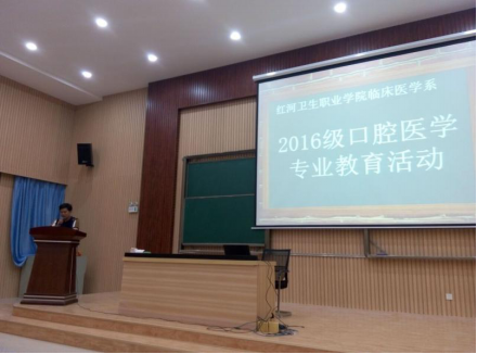 红河州第一人民医院口腔科主任李健给同学们介绍了目前社会对口腔医学医学专业人才的需求;红河卫生职业学院临床医学系副主任、口腔医学专业负责人陈平老师从口腔医学专业所包含的内容、学科的建设与规划、教师的配置与安排、课程体系的设计与搭配、学生就业方向的定位等方面做了介绍。让新入学的学生更加透彻,更加全面的了解了自己所学的专业;口腔临床教研室主任黄松靖老师和口腔基础教研室主任普海娇老师分别以《如何成为一名优秀的口腔医生》和《如何学习好口腔医学专业》为主题开讲。袁庆老师和同学们一起分享了如何处理好大学生活。最后红河卫生职业学院临床医学系主任林坚老师就口腔医学专业的建设、师资力量等对全体新生进行了阐述,并对新生提出了新的期望。