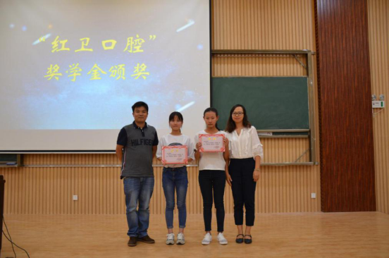 左强副院长向2017级的新同学表示热烈的欢迎和祝贺,希望同学们在新的起点创造新的辉煌。红河州第一人民医院口腔科主任李健给同学们介绍了目前社会对口腔医学医学专业人才的需求;学院临床医学系副主任、口腔医学专业负责人陈平老师系统地给大一新生介绍了我校口腔医学专业的相关情况,并激励大一新生奋发图强,勇于争优,表达了自己对大一新生的美好祝愿和殷切期盼。口腔基础教研室主任普海娇老师从口腔医学专业所包含的内容、课程体系的设计与搭配、学生就业方向的定位等方面做了介绍。让新入学的学生更加透彻,更加全面的了解了自己所学的专业;口腔临床教研室主任黄松靖老师就《如何学习好口腔医学专业》为主题开讲,和同学分享了很多学习方法。同时此次活动还为表现优秀的2016级口腔医学专业的六名同学颁发了“红卫口腔”奖学金,以资鼓励。