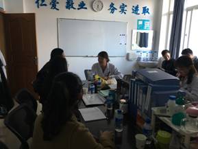 首先,医学影像技术教研室全体教师一行四人与超声科苗蔚主任进行了2018-2019学年下学期超声教学的交流,对超声教学的内容及课程安排进行了探讨,对本届超声方向实习生的表现进行总结。