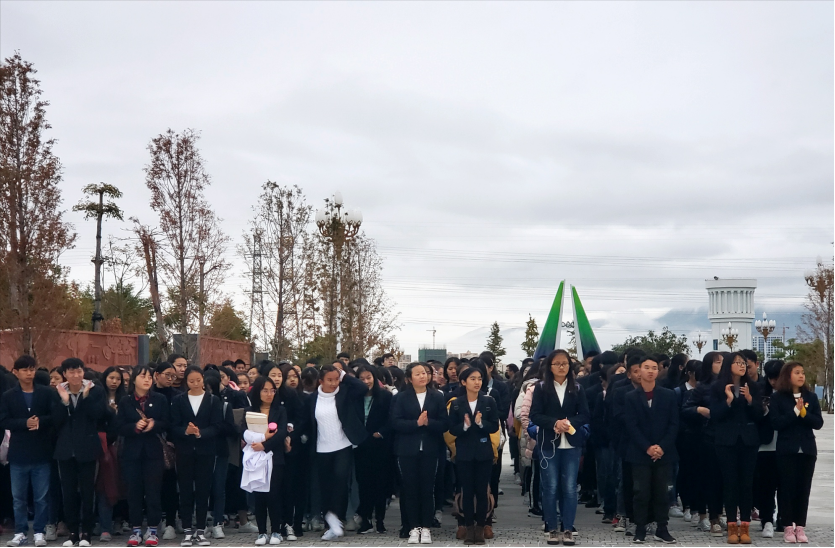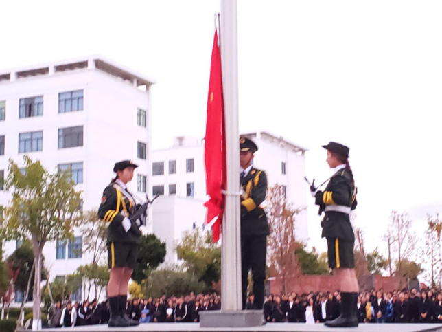 凌冽的寒风吹拂在稚嫩的脸上,可大家仍然昂首挺胸带着骄傲从不退缩,这就是对国旗最大的敬重。一列列整齐的班队,身穿统一的着装,升旗仪式在《义勇军进行曲》的伴随下有序而又庄严的进行着,护旗手踏着整齐的步伐向升旗台走去,升旗手接过国旗伴随着国歌的响起开始了升旗仪式。国旗漂洋在空中后,朱纹懿老师开始了国旗下的演讲,此次她的演讲内容为秋冬季节就行病的防治小知识。