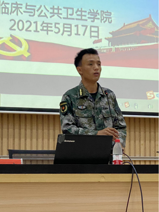 杨雅麟书记作2021年上半年征兵工作情况报告,上半年临床与公卫学院在校男生1008人,征集任务15人,经过学校初检、上站体检43名同学,政审合格后成功入伍14名同学。杨书记还强调国防和军队建设离不开大学生士兵人才。切实做好大学生征兵工作,是党和国家赋予高校新政治责任和历史使命,要求全体师生以高度责任参与到大学生征兵工作中。