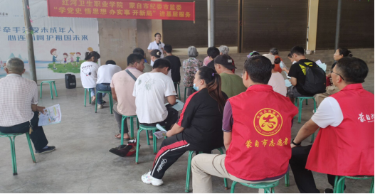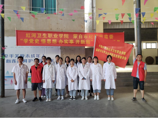 为进一步提高居民健康生活品质,提升居民对自身健康的认知,2021年6月2日下午,临床与公共卫生学院党总支组织党员和学生团员代表共计14人,由学院党总支书记杨雅麟老师和副书记杨丰毓老师带队到蒙自市东村村委会参加红河卫生职业学院与蒙自市纪委市监委联合进行的“学党史 悟思想 办实事 开新局”志愿服务活动。