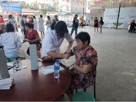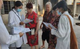 党员教师段润美带领临床专业的同学组成血压测量小分队,为广大居民提供血压测量和医疗咨询服务。