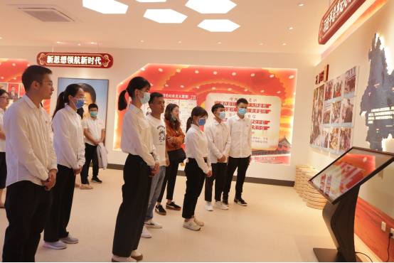 在解说员的带领下,全体党员同志认真聆听一段段艰辛而光辉的历史,关于习近平总书记的大事记以时间轴的方式呈现着,还有许多发生在我们身边的志愿者故事,他们都在用着自己的方式为党的事业不断作贡献,让我们充分了解到人民对美好生活的向往就是我们的奋斗目标。