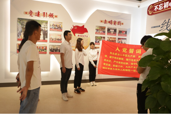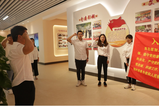 参观完展览后,由李旭同志领全体党员面向党旗宣誓。