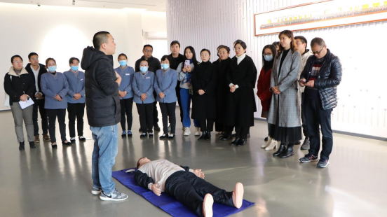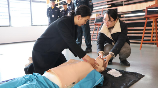 随后进行现场演练,参加的工作人员均格外珍惜亲自演练的机会,依次进行心脏复苏训练,从环境评估到胸外按压,从手法要求到时间控制,在专业老师的指导下,他们严格按照标准进行,练习了一遍又一遍,均较为熟练地掌握了这些生存必备的急救技术。
