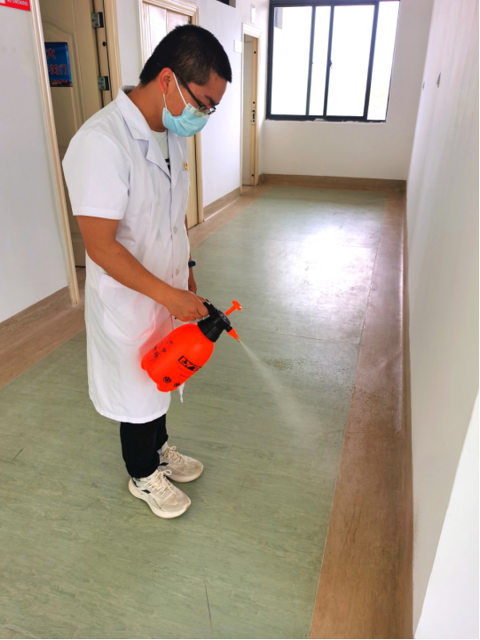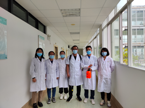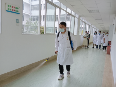 虽然背着重重的喷洒器很累,但每位师生都十分认真,透过口罩也能感受到他们嘴角的笑意。当前国内外疫情形势依旧严峻,通过这次活动不仅能够利用本专业优势,进行教室与楼道的消毒,保障师生工作、学习环境卫生安全,也充分体现预防专业师生和临床与公卫学院第三党支部“奋进新征程、建功新时代”的精气神,真正把“我为群众办实事”与疫情防控工作相结合,实事真正落到了实处。而且在服务过程中,师生都体会到了“为民办实事”的幸福感,全校师生也能够更加深入地了解预防医学专业,更好地落实大卫生、大健康观念。