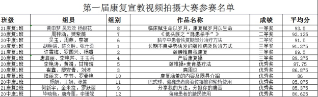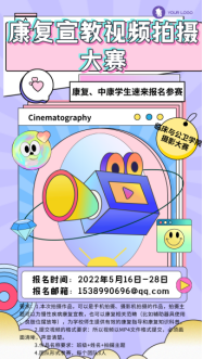 第一届康复、中康专业康复宣教视频拍摄大赛于5月16日至5月28,该活动旨在丰富和深化同学们职业教育的实践内容,促进青年学生更好的做到理论和实践相结合,并进行康复治疗技术与中医康复技术职业素质教育,培养学生的创新精神。