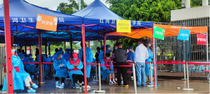 2022年8月20日上午,我校开始组织学生返校。为确保开学工作的安全有序,保障学生健康返校,学校多措并举,全力以赴做好开学的各项准备工作。并征集了大批的志愿者参与到健康返校活动中来。