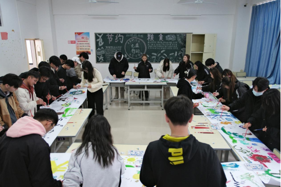 生涯画布创作环节。同学们将桌子摆成一个方形,长长的画布铺在桌上。大家拿起画笔,开始描绘心中所想,画出对未来的期待。画好之后,下一位同学在上一位同学创作的基础上继续创作。随着时间推移,画布上的图案逐渐丰富,融合了不同同学的创意与想法。当画作完成,大家看着最终的成果,有的惊喜于自己最初的想法在他人的添笔下变得更加完善,有的感慨于集体创作带来的奇妙变化。