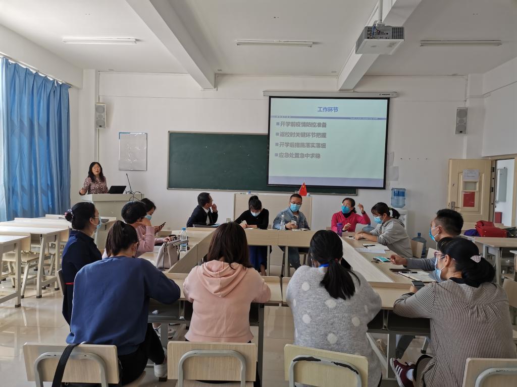 为进一步巩固防疫成果,全力做好我部门开学前防疫准备工作,2020年4月15日下午3点,思政部在教学北楼603开展新冠肺炎疫情防控工作培训会,全体思政课教师参加此次培训。
