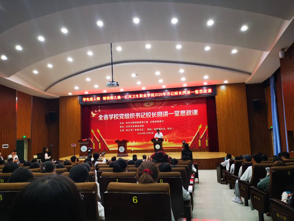 为落实全省学校思想政治工作推进会精神,深入学习“云岭楷模”张桂梅老师典型事迹,2020年10月9日晚,红河卫生职业学院通过“线下课堂、线上直播”的方式,举办了“党委书记、校长同讲一堂思政课”活动,全校师生同步收看。