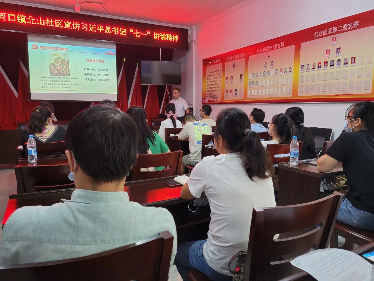 为深入学习贯彻习近平总书记在庆祝中国共产党成立100周年大会上的重要讲话精神,按照中央和省委的安排部署,州委宣传部会同有关部门,抽调一批政治素质好、理论水平高、党史学养厚、宣讲能力强的领导干部和专家学者组成州委宣讲团到各县市开展学习贯彻习近平总书记在庆祝中国共产党成立100周年大会上重要讲话精神专题宣讲工作,2021年8月2日,我校马克思主义学院副院长李兴旺老师作为宣讲团成员走进河口农场、河口镇北山社区开展面对面、互动式的座谈宣讲活动。