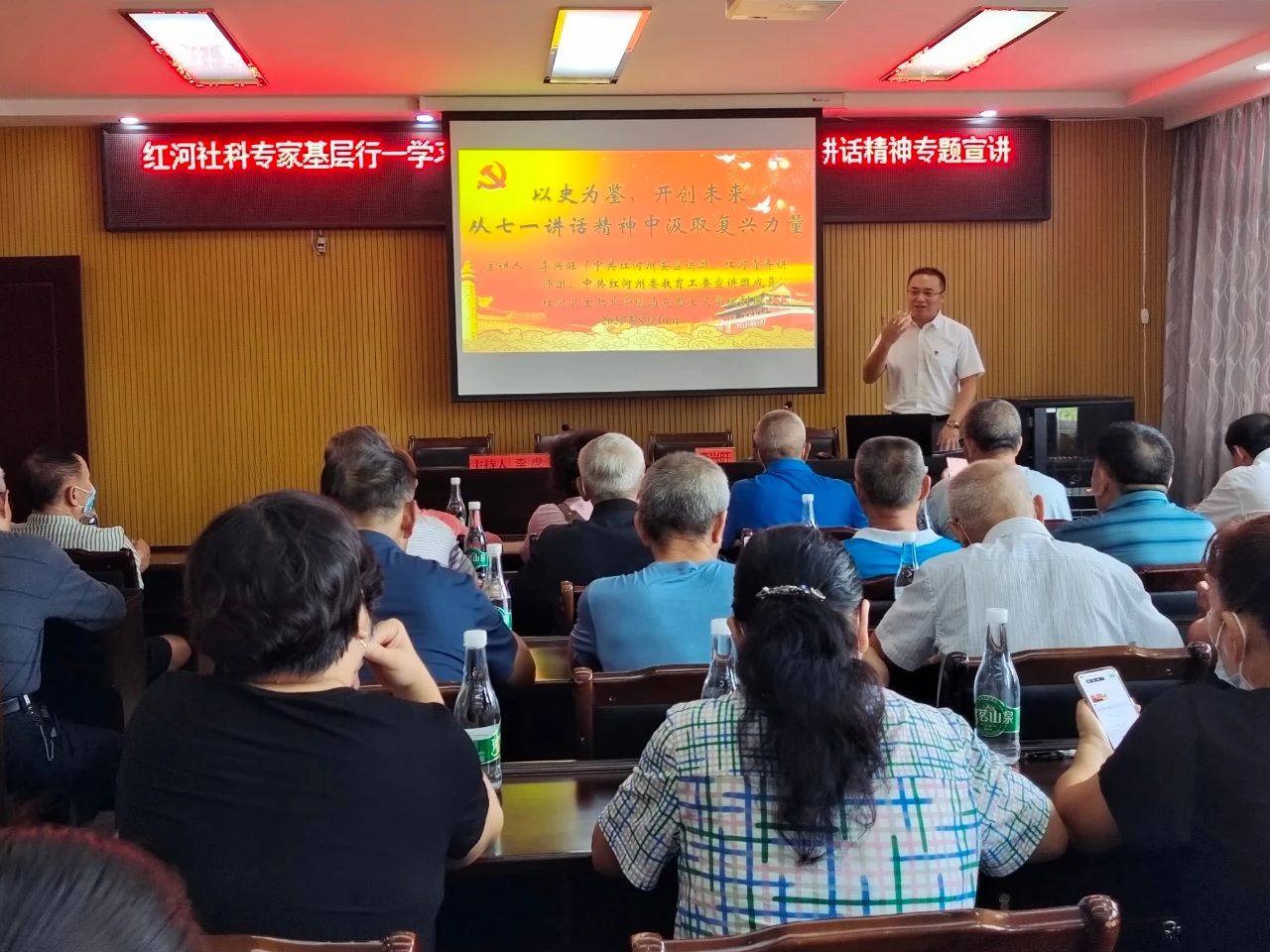 8月10日,建水县在老年大学举办“红河社科专家基层行—学习贯彻习近平总书记‘七一’重要讲话精神专题宣讲”离退休干部专场,邀请中共红河州委宣讲团成员、红河卫生职业学院马克思主义学院副院长李兴旺主讲,全县实职处级老干部和离退休干部党支部书记、老干部工作者40人参加活动。