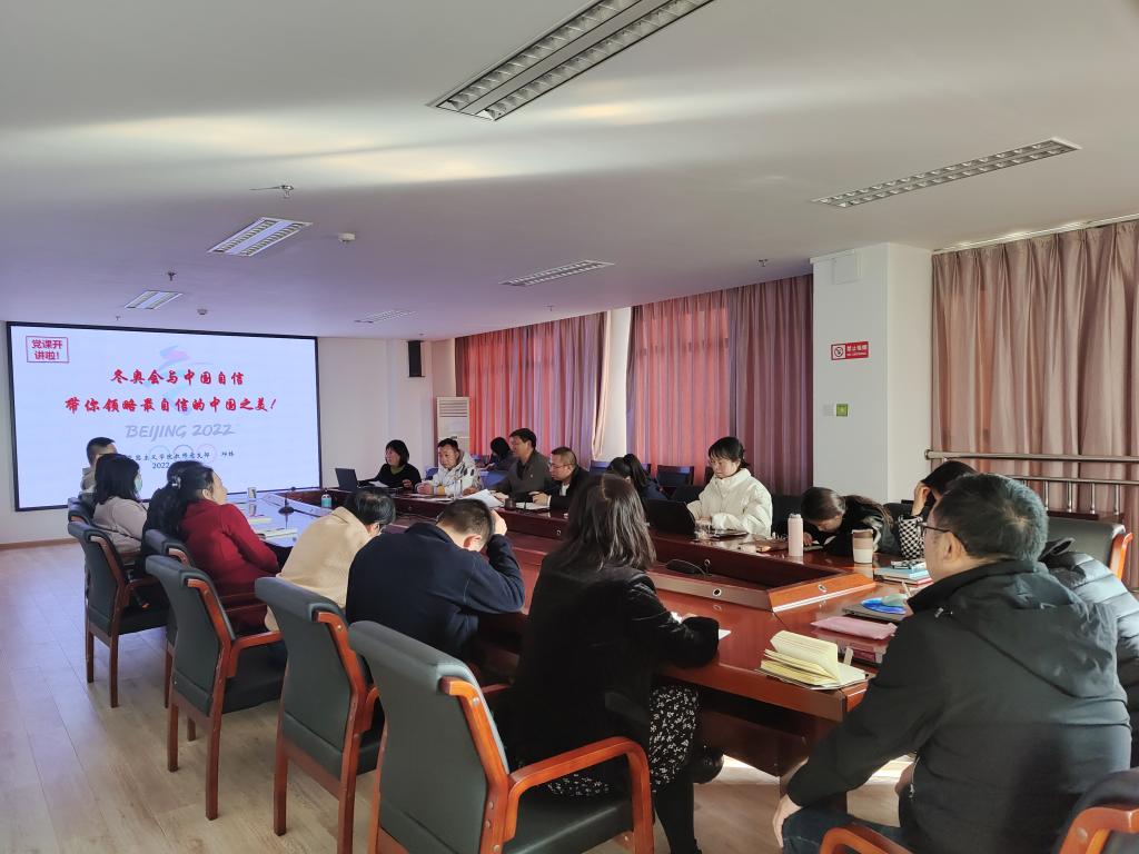 2022年2月25日,马克思主义学院教师党支部开展了新学期支部书记讲党课活动,支部书记邱林以《冬奥会与中国自信,带你领略最自信的中国之美》为主题给支部全体党员以及积极分子讲授专题党课。学院党委书记张云学同志参加了此次活动。