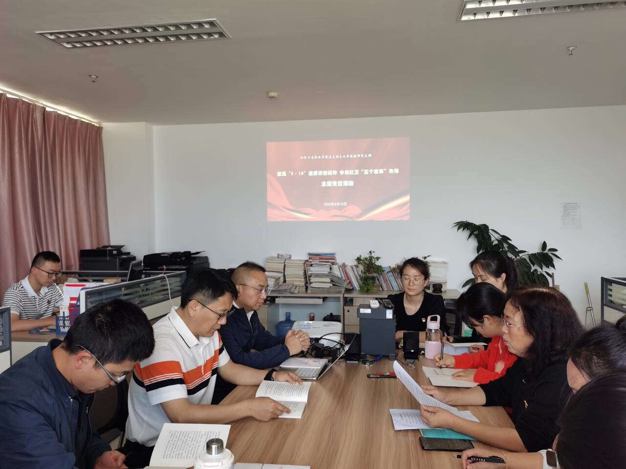 2024年3月15日,在习近平总书记主持召开学校思想政治理论课教师座谈会五周年之际,为持续深化落实习近平总书记“3·18”重要讲话精神,进一步推动我校思政课高质量发展,马克思主义学院教师党支部开展了以“重温‘3.18’重要讲话精神,争做红卫‘五个表率’先锋”为主题的党日活动,会议由党支部书记、院长邱林主持,学校党委书记王必成及全体教师党员参。