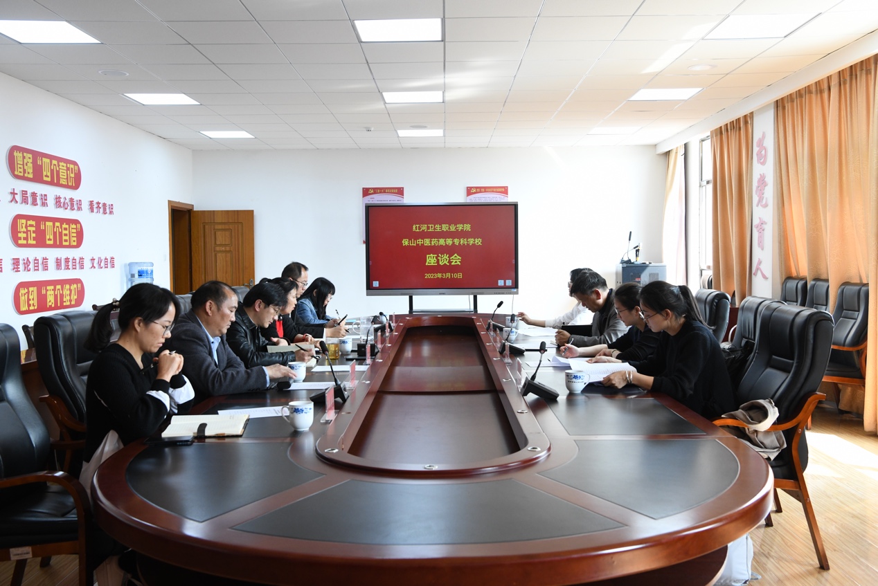 为了加强兄弟院校之间的协同发展,促进校际合作交流,进一步提升我校教育质量和教师专业能力,2023年3月10日下午,校党委书记张云学带队赴保山中医高等专科学校进行参观交流,马克思主义学院思政教师沈宇、熊雯以及组织员谭倩参加此次座谈交流,保山中医高等专科学校党委副书记杨朝丽,组织部部长李海旸、宣传部部长陈广超、马克思主义学院院长张有林等陪同调研并参加座谈会。