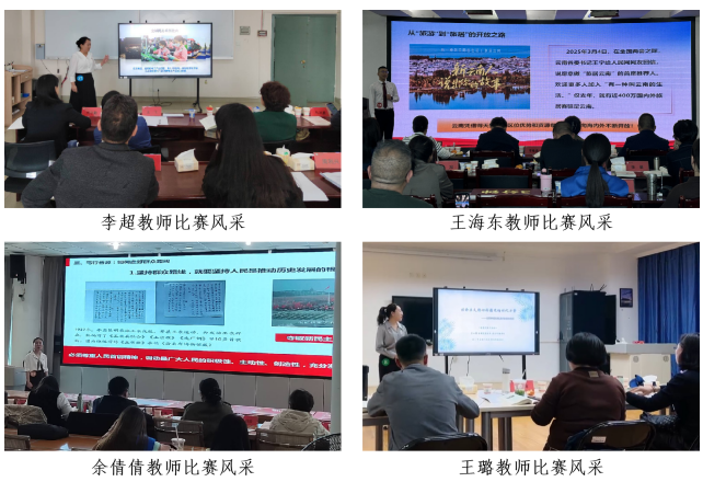 我校思政课教师为比赛倾尽全力。赛前,马克思主义学院精心组织了多轮教学磨课活动,参赛教师们通过的方式,群策群力,智慧共享,不仅助力教师个人成长,也提升了学科团队的整体素养,真正实现了一人比赛、众人参与、集体成长的目标。