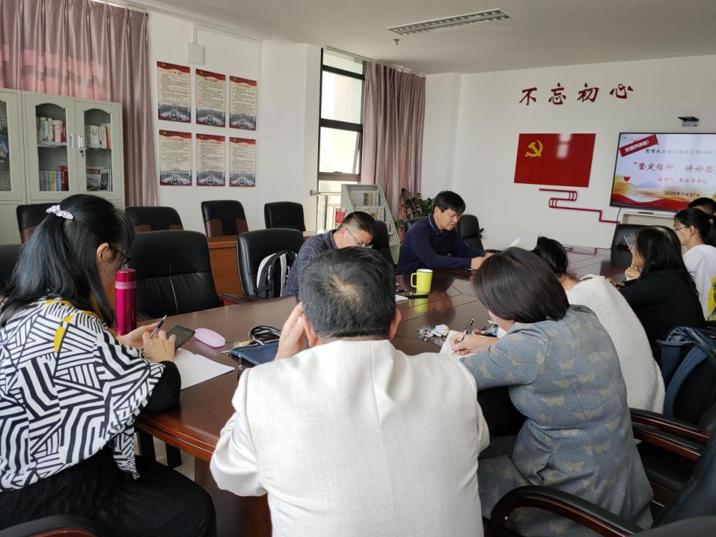 2020年11月27日下午,思政部党支部在图书馆901党员活动室进行“党课开讲啦”活动,学院党委书记张云学以“坚定信仰 讲好思政课”为主题,为思政部党支部全体党员讲授专题党课。