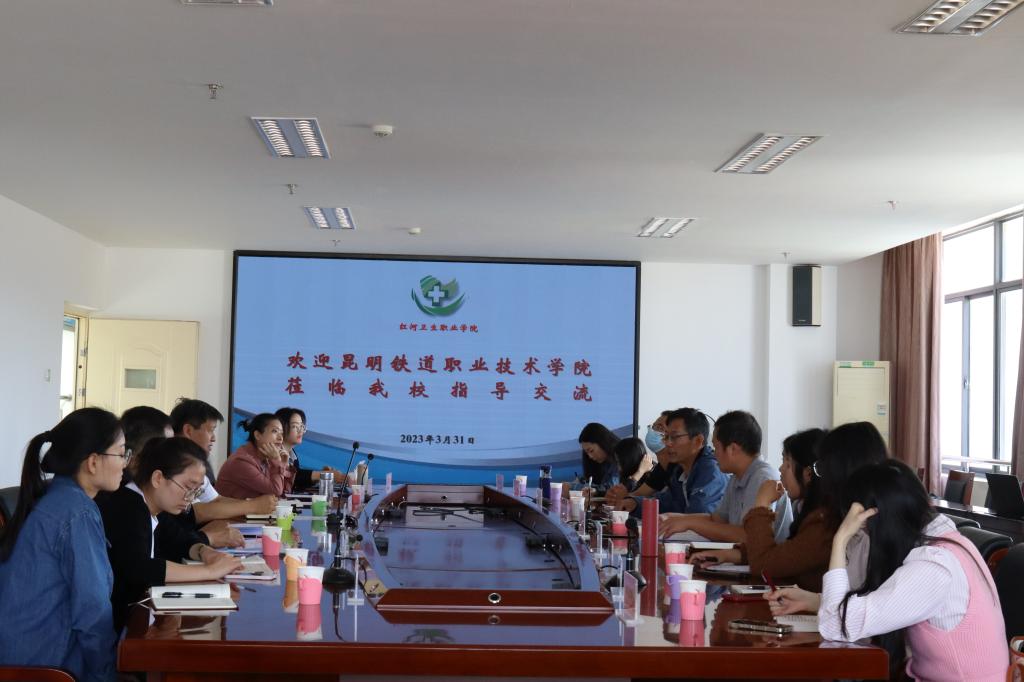2023年3月31日上午,昆明铁道职业技术学院马克思主义学院李映才一行9人到我校考察交流,主要针对马克思主义学院党支部建设、师资队伍和教研室建设、思政课教学能力大赛经验等内容进行调研考察交流。学校党委书记张云学和马克思主义学院教师代表参加了本次交流活动,座谈会由马克思主义学院副院长李兴旺主持。