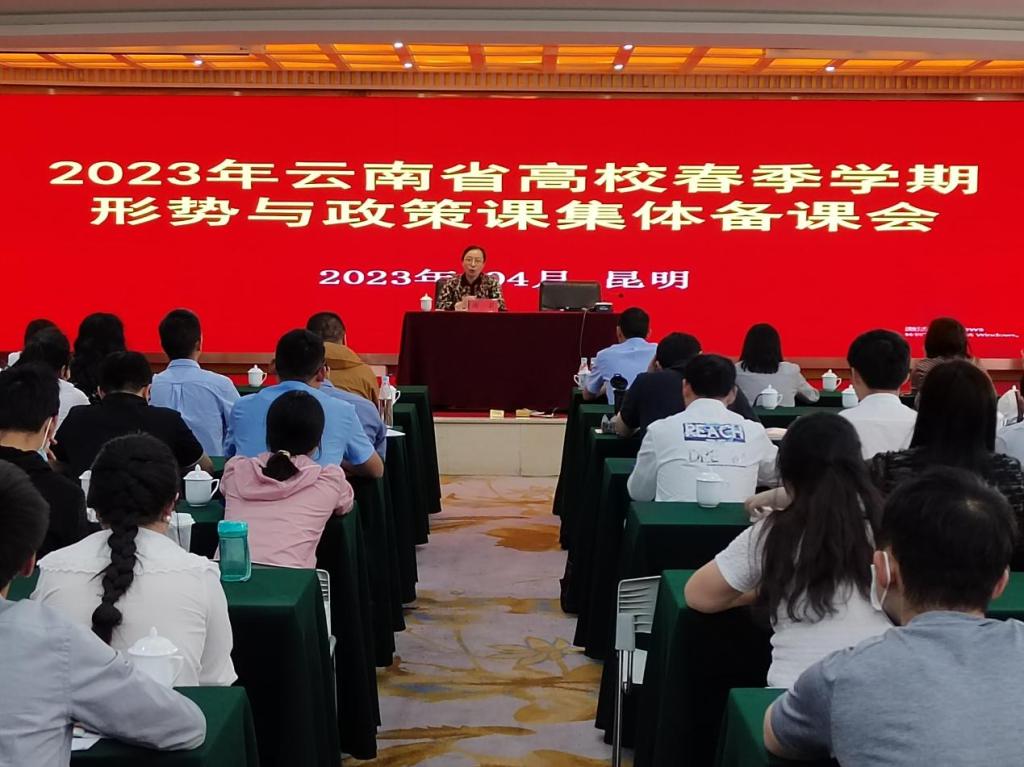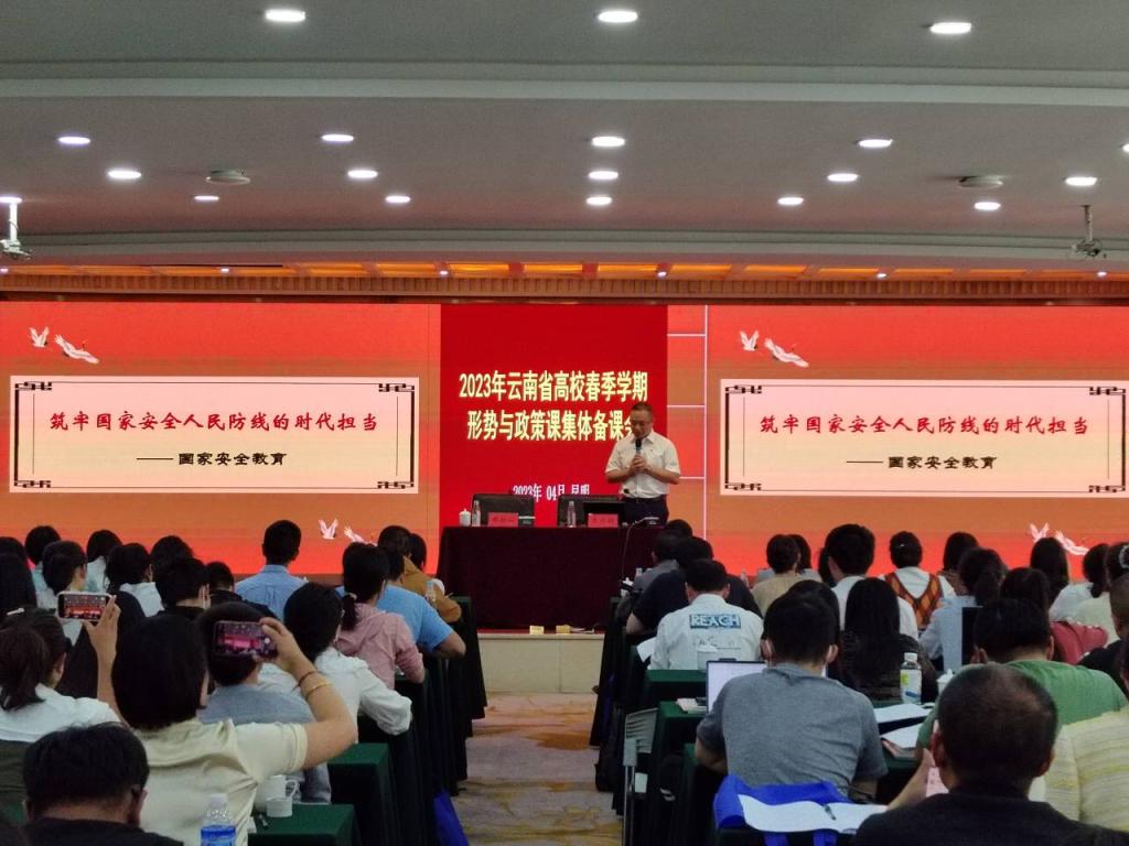 为深入学习贯彻习近平新时代中国特色社会主义思想和党的二十大精神,贯彻落实习近平总书记关于“大思政课”和全面加强国家安全教育的重要指示批示精神,深化思政课改革创新,提升思政课教师队伍综合素质,2023年4月17-18日,云南省高校春季学期“形势与政策”课集体备课会在昆明召开,来自云南省内80余所高校的180余名教师参会,由我校马克思主义学院副院长李兴旺带队,思政教师邹岱熹、王海东一同参加集体备课会。