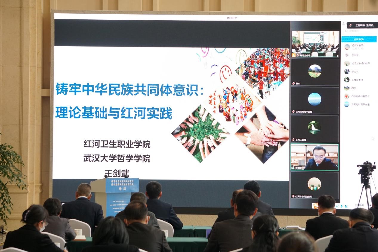 会上,马克思主义学院副院长王剑武围绕“铸牢中华民族共同体意识:理论基础与红河实践”进行交流发言,主要从“马克思主义的哲学基础”和“云南红河实践”系统阐述了中华民族共同体意识中的逻辑体系,深刻挖掘出内在的哲学基础,致力于分析红河州优势特色,在实践中提出针对性强的对策举措,对维护国家边疆巩固、促进民族团结进步具有重要的理论和现实意义,与党的二十大报告有机结合,与时俱进地揭示了新时代民族团结进步事业的必要性,实现云南各少数民族优秀传统文化创造性转化,构筑中华民族共有精神家园。