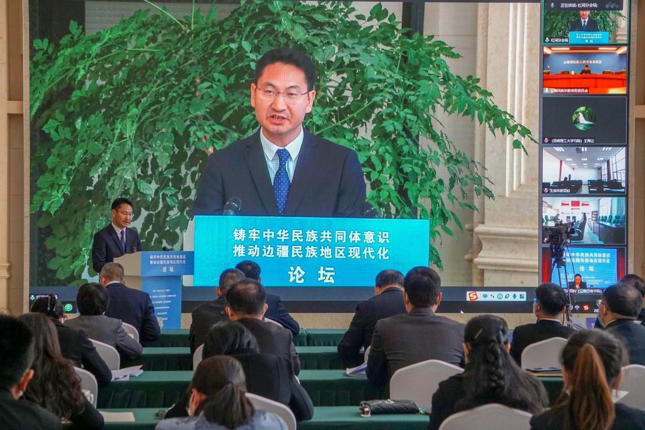 2022年12月2日,“铸牢中华民族共同体意识 推动边疆民族地区现代化”论坛在中共云南省委党校(云南行政学院)召开,红河州融媒体中心一楼大厅设分会场,来自全国及省州的相关领导和社科专家出席本次活动。我校马克思主义学院副院长李兴旺带队,思政教师沈宇、王海东一行三人在现场参加活动,马克思主义学院副院长王剑武在线上参会。