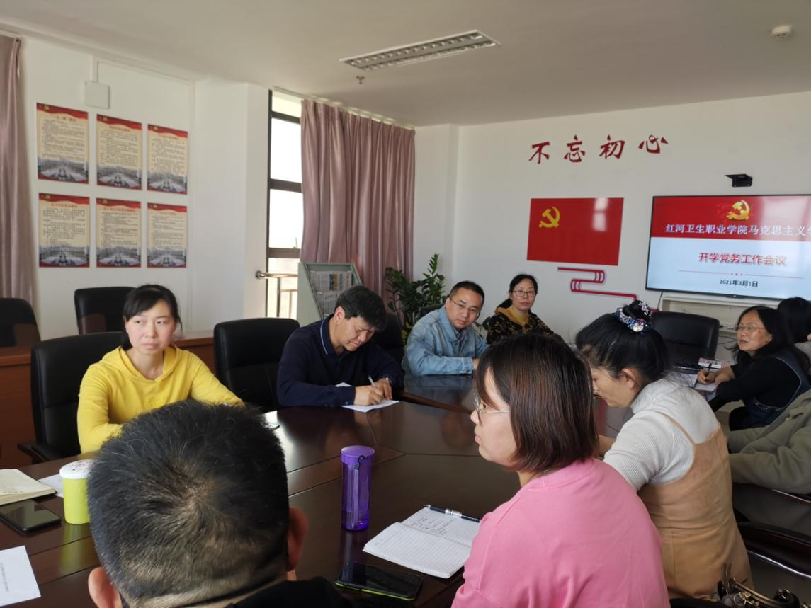2021年3月1日下午3点,新学期开学之际,为保证新学期各项工作开好局、起好步,马克思主义学院全体教师在校务管理中心9楼901会议室召开2021年春季学期开学工作会议。会议由马克思主义学院副院长李兴旺主持,我校党委书记张云学出席会议并讲话。