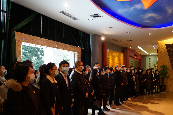 为深入学习贯彻习近平总书记在党史学习教育动员大会上的讲话精神,将党史学习教育引向深入。2021年12月25日上午,红河卫生职业学院赴武警驻蒙某部开展“传承光荣传统 赓续红色血脉”党史学习教育主题活动。学院党委书记张云学,党委副书记、院长唐飚,马克思主义学院、临床与公共卫生学院、药学院、校工会等党政主要负责同志及各支部党员教师共60余人参加本次活动。