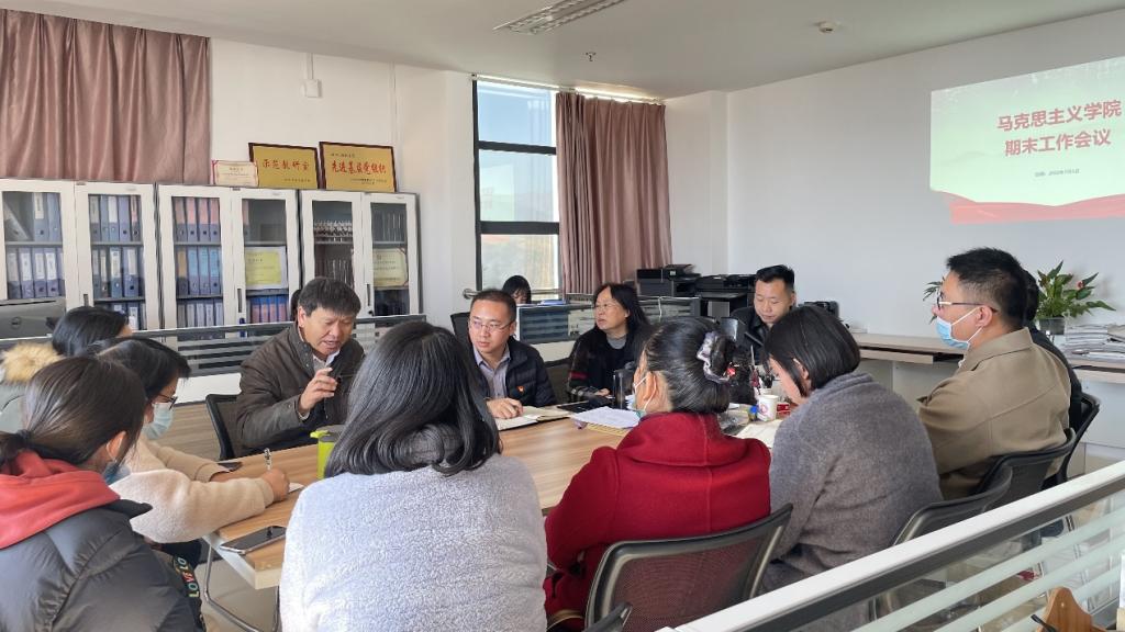 2022年1月5日上午,马克思主义学院召开期末工作会议,会议由副院长李兴旺主持,全体教师参会。党委书记张云学参加会议。