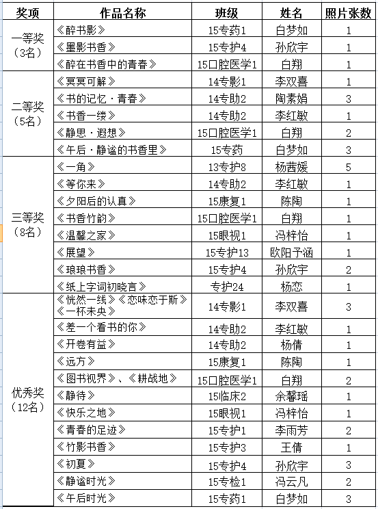 红河卫生职业学院首届“书香光影”之最美图书馆摄影获奖名单