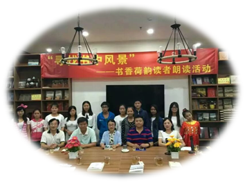 惜书、爱书、醉在书香中的你怎能错过此次活动,图书馆“书香荷韵文化沙龙”为醉美书香的你提供了一个平台,伴上一杯清茗或一杯香浓咖啡,你可以尽情地去朗读你所喜欢的文字,或清音素言,用你的声音去打动他人;亦或是配上自备的背景音乐、也可搭上朗诵背景(PPT),尽情地渲染你的心境。学院党委副书记、纪委书记饶培辉说:“朗读者借助别人的文字,抒发自己的心声!”
