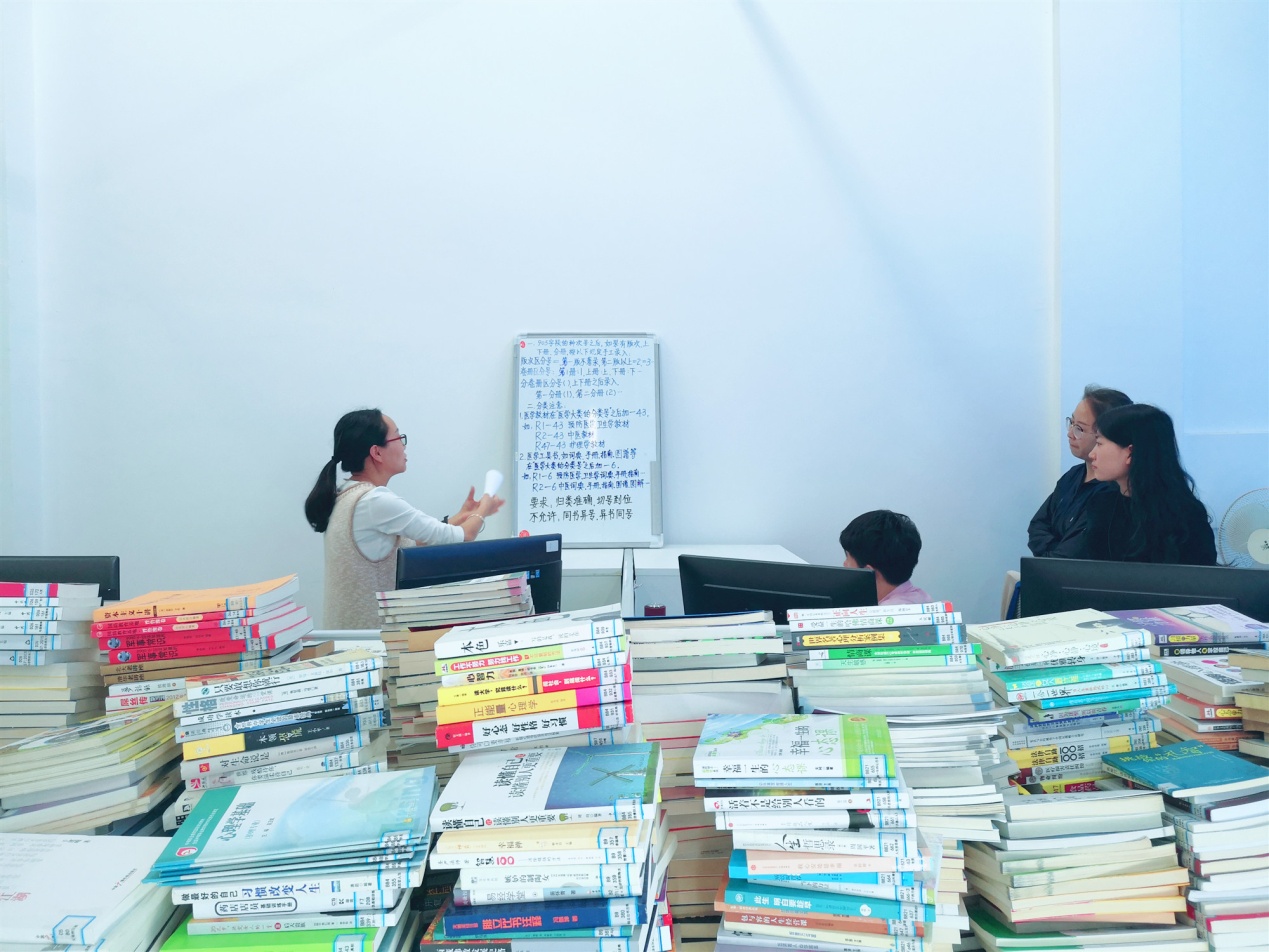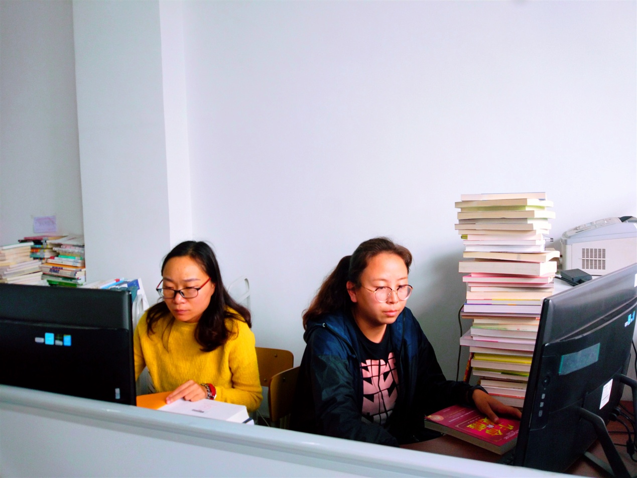 为了保证录入图书的准确性,工作人员一直坚持不断学习,老员工对新员工很有耐心的培训。