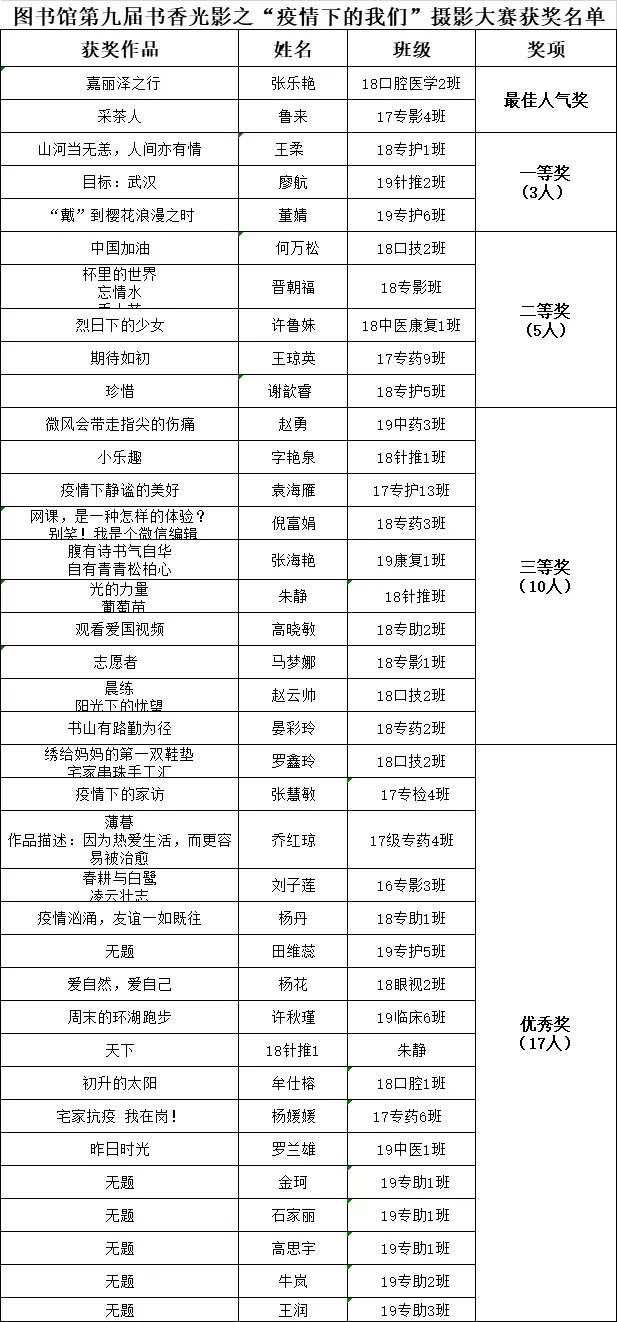喜报 | 图书馆第九届书香光影之“疫情下的我们”摄影大赛获奖名单出炉啦