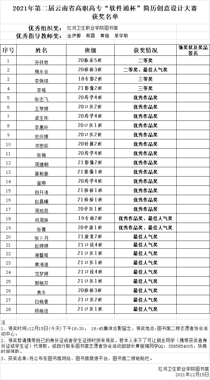 喜报 | 2021年年第二届云南省高职高专“软件通”简历创意设计大赛获奖名单