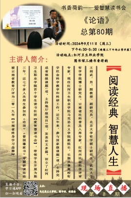 为贯彻落实习近平总书记“要把中华优秀传统文化教育作为固本铸魂的基础工程,贯穿人才培养全过程”的指示要求,提升我校学生的综合素养,营造书香校园的良好氛围,2024年9月11日下午,由马克思主义学院、图书馆、校团委联合举办的“书香荷韵——爱智慧读书会”第80期读书活动,在图书馆三楼书香荷韵举行,本此活动由马克思主义学院王剑武副教授主讲。