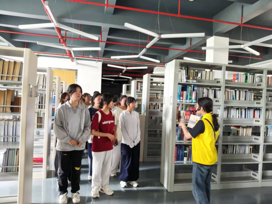 他们更是知识的“引路人”。在每一次入馆讲解中,他们不仅仅是介绍空间和相关规则,更是在传递对阅读的热爱与对知识的尊重。他们用生动的语言,详细介绍纸质书籍的分类与馆藏地,引导新生学会利用电子资源平台拓展学习,分享各类读者活动的信息,激发着每一位听众探索未知世界的兴趣。