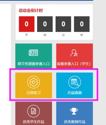 方式二:参赛学生登录练习平台,点击此链接:http://2023ilc.conference.calis.edu.cn,找到页面中的日常练习和历年真题入口