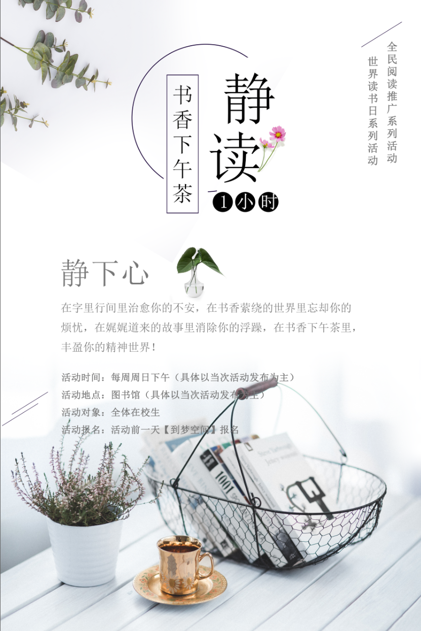 书香下午茶,每周静读一小时活动