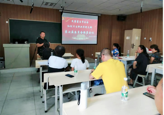 会议审议通过了民盟红河卫生职业学院支部主委赵菊芬所作的工作报告,严格按照程序选举产生了以陈平为主委,雷振宇、杨蓉为副主委,肖磊为宣传委员,左彩莲为组织委员的第七届民盟红河卫生职业学院支部领导班子。陈平代表新一届支部领导班子作表态发言。