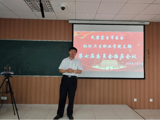 2021年7月9日下午,民盟红河卫生职业学院支部在教育技术中心201室召开换届选举大会,共有20名盟员参会。红河卫生职业学院党委书记张云学,民盟蒙自市委主委何伶、民盟蒙自市委专职副主委苏洁虹出席会议。会议由陆晓梅主持。
