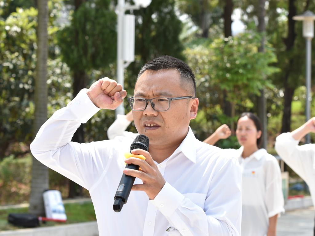 仪式上,学校党委副书记、院长唐飚讲话,对全体党员及学生提出了殷切希望:全体党员干部要继承和发扬先烈先辈们的光荣传统和崇高精神,将其转化为推动工作的强大动力,将爱国主义教育贯穿于教育教学全过程,培养德智体美劳全面发展的医学生,为健康红河、健康云南作出应有的贡献。全体同学们要珍惜来之不易的幸福生活,赓续红色血脉,以先烈们为榜样,学习他们坚定的理想信念、无私的奉献精神、顽强的拼搏精神,用扎实的专业能力和刻苦肯干的宝贵品质,为祖国的医药卫生事业、为实现中华民族伟大复兴的中国梦贡献自己的力量。