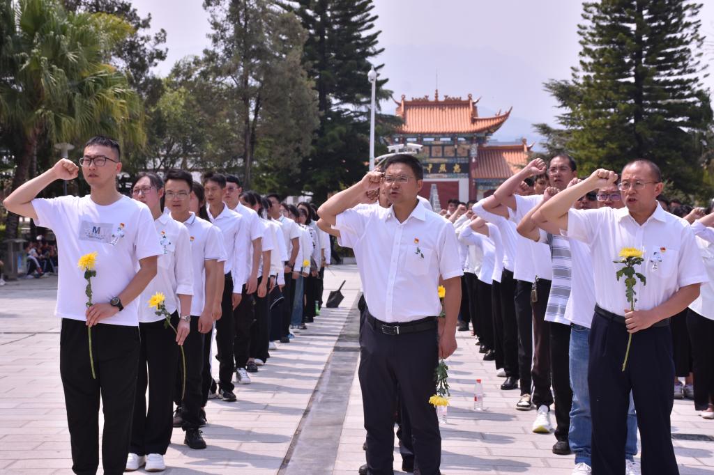 随后,师生向长眠在蒙自市烈士陵园的541名革命烈士默哀致敬,敬献花圈,致以最深切的缅怀和最崇高的敬意。