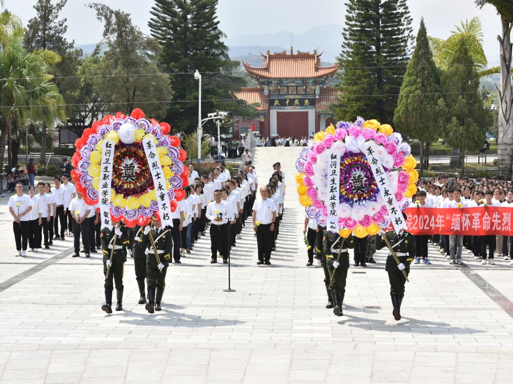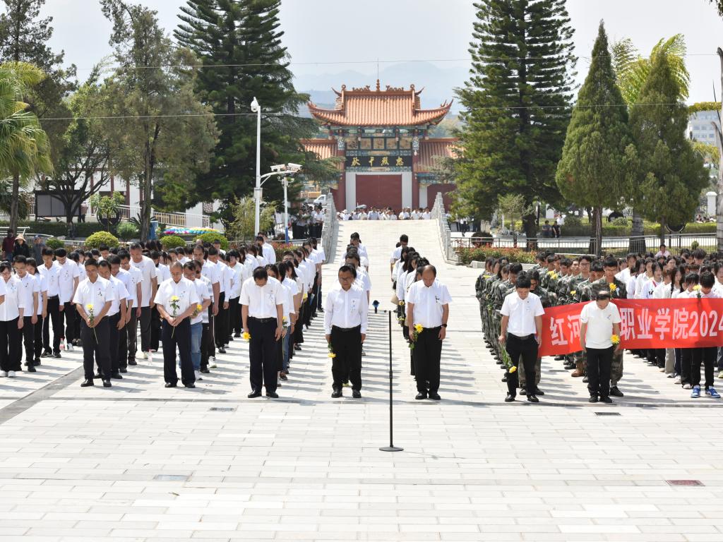 为缅怀革命先烈,弘扬爱国主义精神,2024年4月3日下午,红河卫生职业学院400余名师生代表前往蒙自市烈士陵园开展“缅怀革命先烈,赓续红色血脉”清明祭英烈活动。