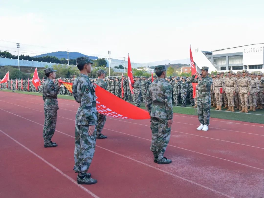 武警驻蒙某部领导蒙自市人民武装部领导为各营授营旗