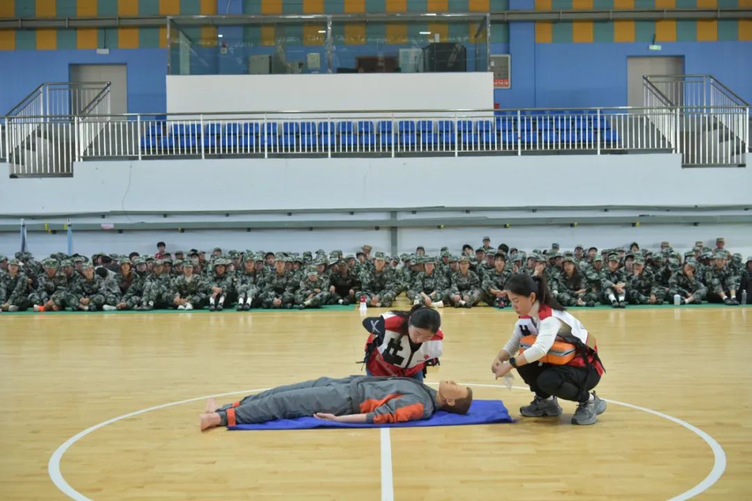 为培养我校师生应对突发疾病及意外伤害的基本急救能力,增强师生社会责任感及应对突发状况的自信心,落实我校急救教育试点学生工作要求,12月10日下午军训期间,校红十字会组织新生代表、全体班主任、辅导员、校医、体育教师、宿管员、安保人员等共计800余人,在校体育馆开展应急救护技能培训。