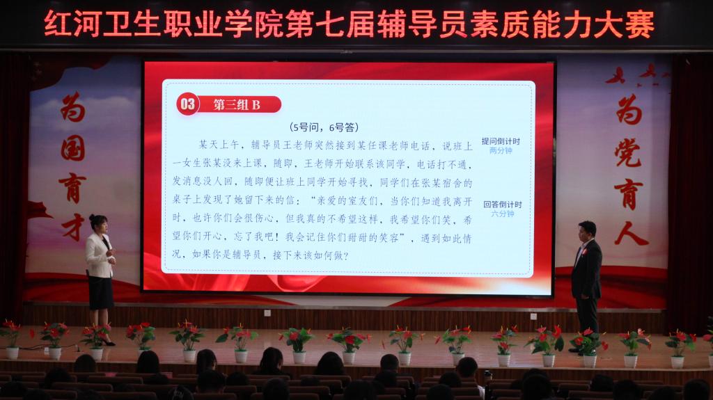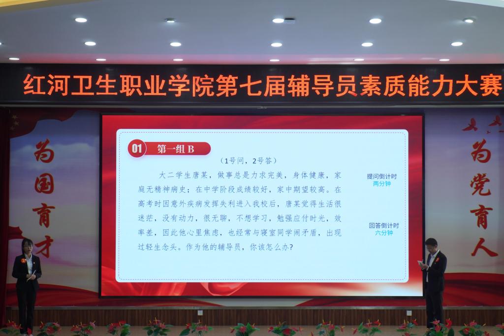 为进一步加强我校辅导员队伍建设,不断提升辅导员的理论水平、职业能力和专业素养,2023年11月29日下午,红河卫生职业学院第七届辅导员素质能力大赛决赛在图书馆二楼报告厅举行。各二级学院分管学生工作领导、全体辅导员及部分学生代表观摩比赛。